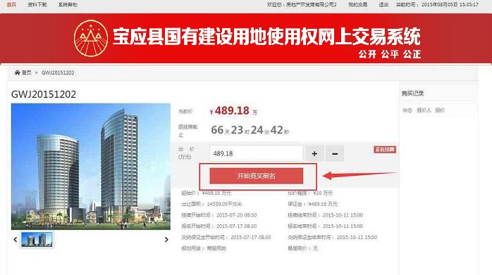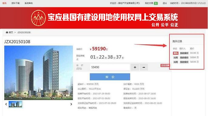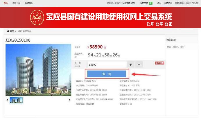 1)竞买人登录后,点击【报价】按钮可进行报价,如下图: