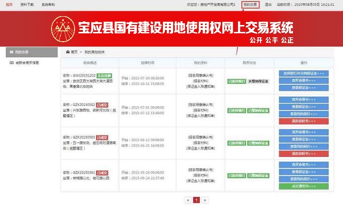 7)进入交易系统主界面后选择正在挂牌的地块点击进入,如下图:
