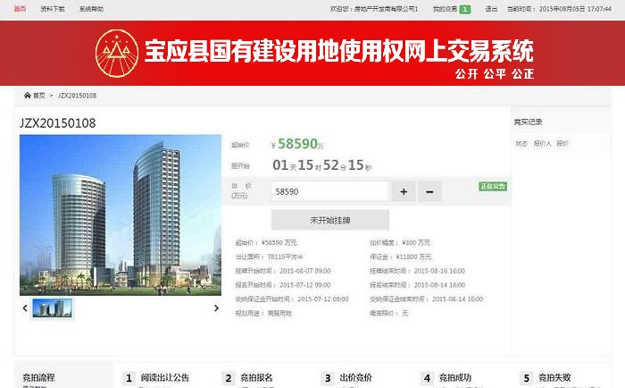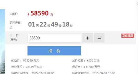 土地使用权交易公告发布时,会规定保证金缴纳时间、自由报价期、限时报价期等,竞标的在挂牌开始即进行自由报价期,每次报价都必须是最高报价和增价幅度的整数倍。
