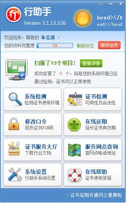 注:(1)第一次使用CA,请选择【行助手下载】,下载后安装; (2)运行【行助手】显示界面如下: